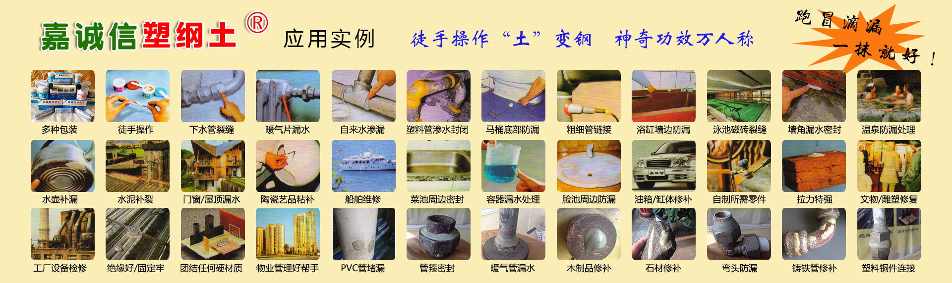 山西嘉誠(chéng)信是中國(guó)塑鋼土品牌產(chǎn)品的合法專(zhuān)業(yè)廠家,《嘉誠(chéng)信塑鋼土》是中國(guó)正宗合法之塑鋼土!其他任何人、任何廠家商家號(hào)稱(chēng)的所謂“塑鋼土”均為假冒偽劣侵權(quán)之貨!